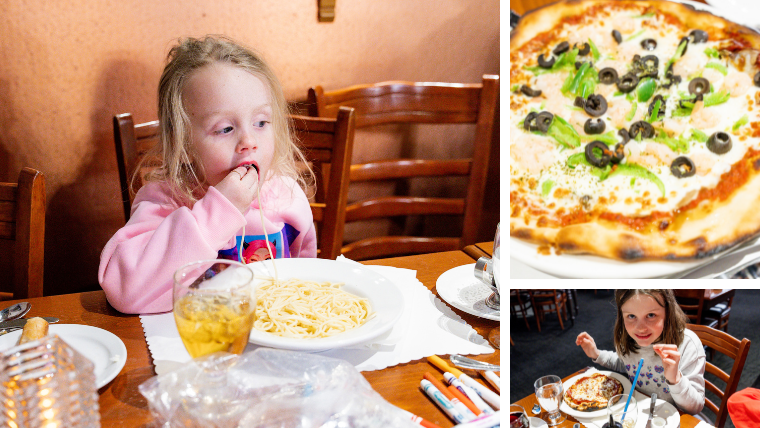 In the evening, we ended the day at Le Vieux Four restaurant, just minutes from the hotel. Traditional oven-baked pizzas, smoked salmon pasta, and a cozy atmosphere. There’s even a delicious and affordable kids’ menu, plus coloring booklets — a must if you want a relaxed dinner with children.
